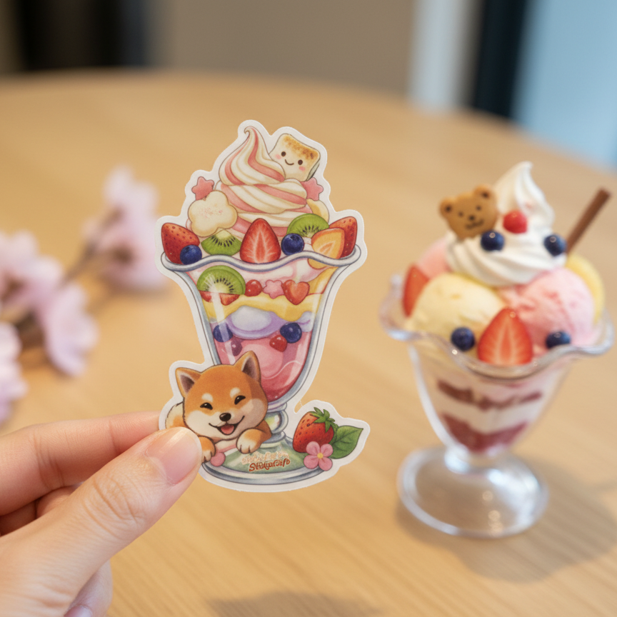 ✨ Sticker – Shiba FrüchteEisbecher